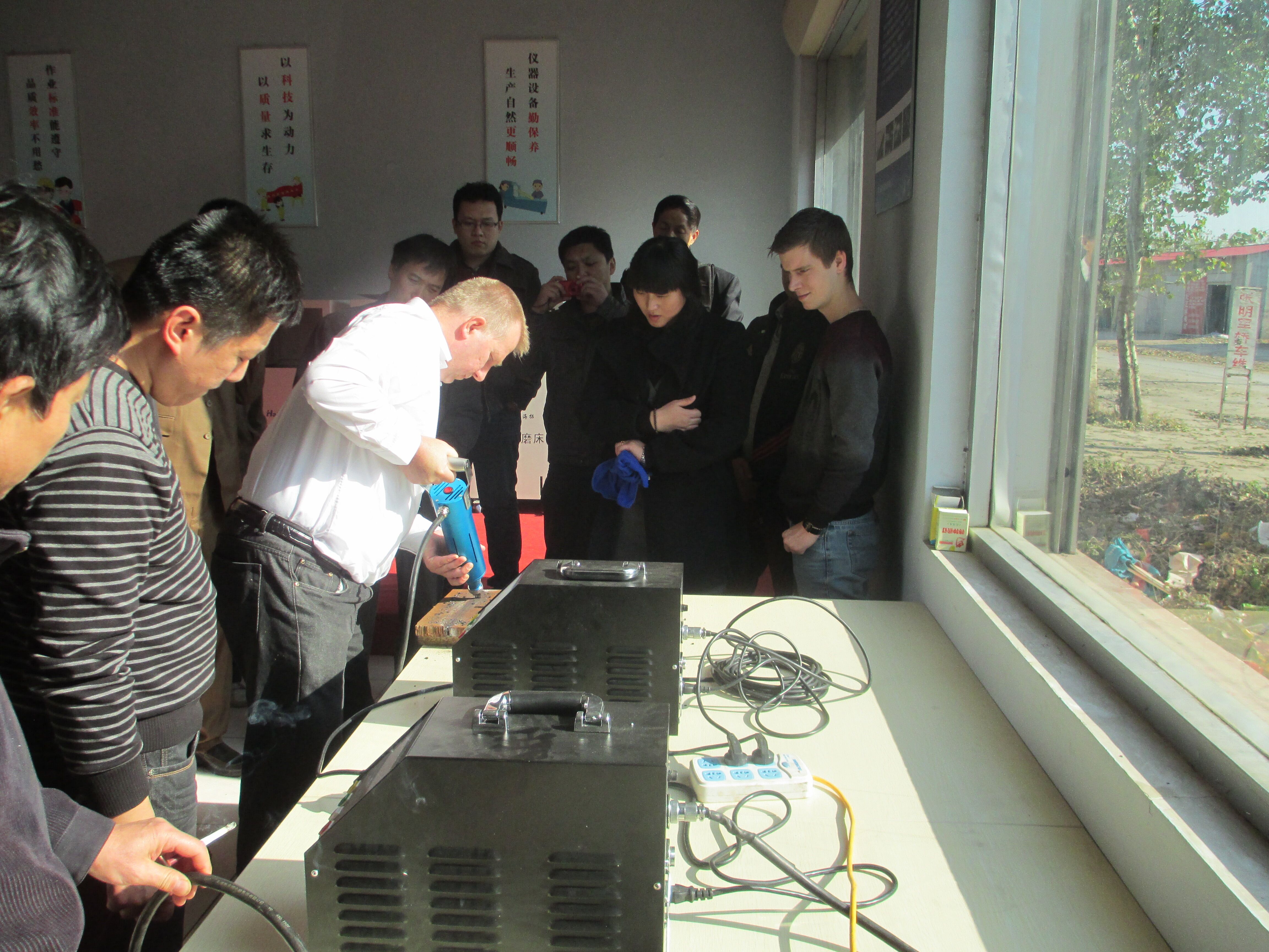 美順帶領(lǐng)客戶試驗(yàn)超聲沖擊槍